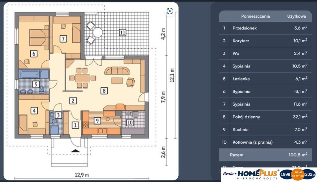 dom o powierzchni 102 m2 posadowiony na dużej działce o powierzchni