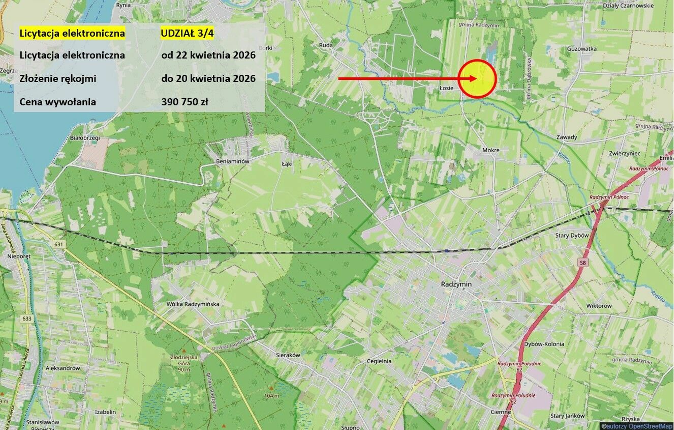 Komornik Sądowy przy Sądzie Rejonowym w Wołominie Mateusz Stanisław Borek Kancelaria Komornicza nr I w Radzyminie podaje do publicznej wiadomości, że w trybie ustalonym w art. 9864 § 4 ustawy z dnia 17 listopada 1964 r. Kodeks postępowania cywilnego (dalej: kpc) w dniu 22.04.2026 r. o godzinie 12:00, rozpocznie się druga licytacja w trybie elektronicznym nieruchomości: